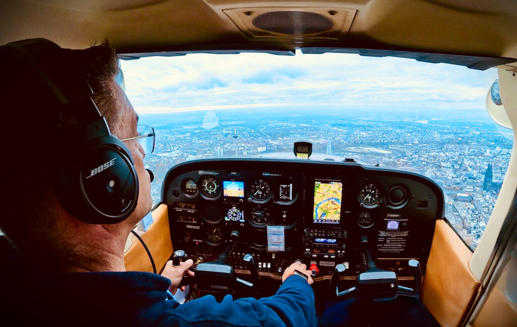 nun als Pilot über den Wolken